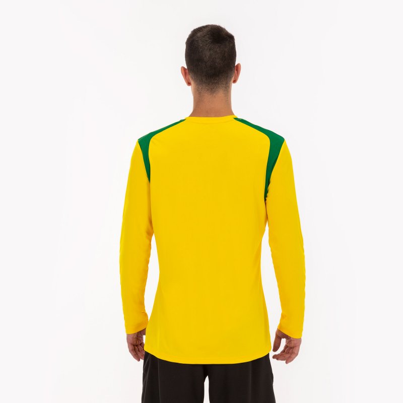 Hosszú ujjú póló kerek nyakkivágással, alapanyagból készült. Kontrasztos színű darabokkal a vállon és a hónaljban.