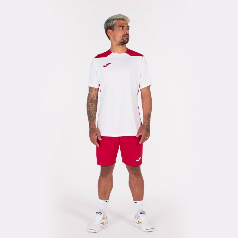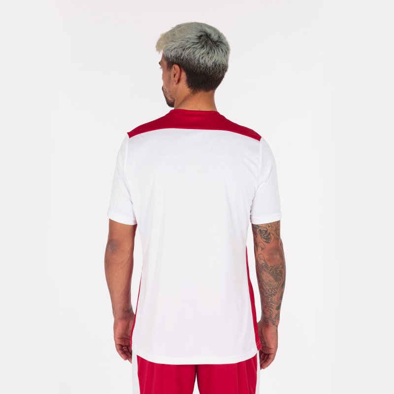 Rövid ujjú póló kerek nyakkal. Kontrasztos részletekkel az oldalán, a gallérján és az elején. Hímzett logóval.